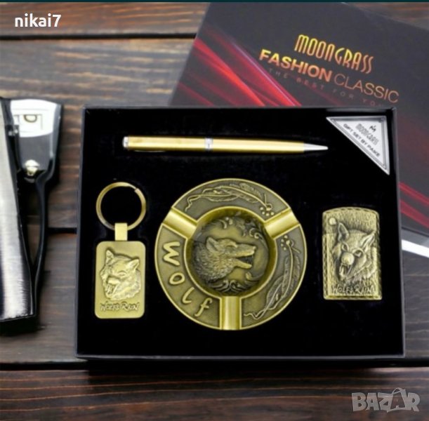 Подарочный набор с пепельницей Волк Зажигалка/Брелок/Ручка №YJ-6439 Moongrass