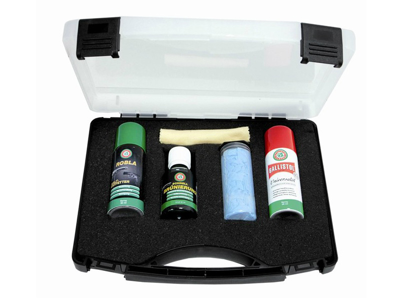 В комплект входят: 1. Масло оружейное Ballistol spray 50мл 2. Средство для воронения Ballistol Schnellbrunierung 50мл 3. Средство обезжиривающее Ballistol Robla-Kaltentfetter spray 50мл 4. Одноразовые перчатки (2шт) 5. Кисточки из козьей шерсти (2шт.) 6. Салфетки неворсяные для ухода (2шт.) Баллоны под давлением. Не нагревать свыше 50°С. Беречь от детей. Производитель: F.W. Klever GmbH, Hauptstr. 20, D-84168 Aham. Произведено в Германии.